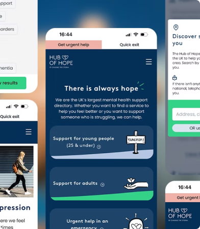 The Hub of Hope is a free, UK-wide mental health support database developed by the charity Chasing the Stigma. Available as both a mobile app and online platform, it enables users to locate local, national, peer, community, charity, private, and NHS mental health services by entering their postcode. The app features enhanced filters to tailor searches based on individual preferences, including age, service type, and availability during weekends or evenings. Additionally, the ‘Need Help Now?’ function provides immediate connection to crisis support services. By consolidating over 13,000 support services, the Hub of Hope aims to make mental health support more accessible to everyone in need.